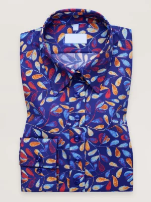 17. Granatowa koszula slim w kolorowe liście