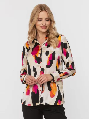 7. Fuksjowa koszula slim w kolorowe plamy