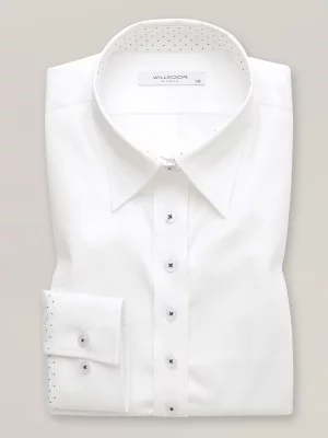 Biała koszula slim z kontrastami w kropki