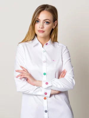 Biała koszula slim ze stylowymi guzikami