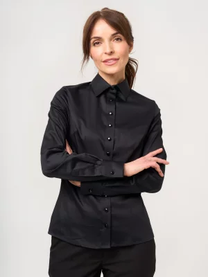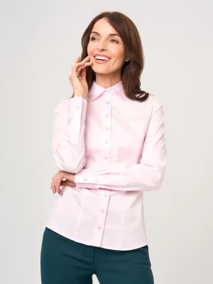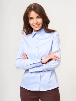 17. Miedziana, satynowa koszula o prostym kroju w panterkę