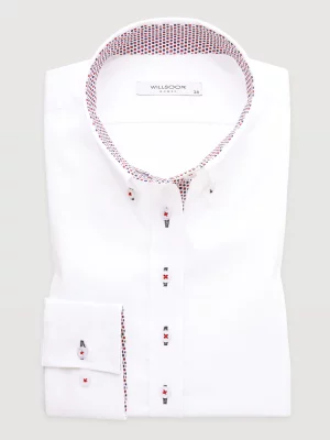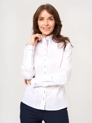 17. Miedziana, satynowa koszula o prostym kroju w panterkę
