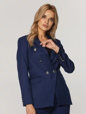 35. Granatowa, dwurzędowa marynarka damska