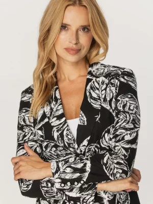 Biało-czarna marynarka damska typu Long Size