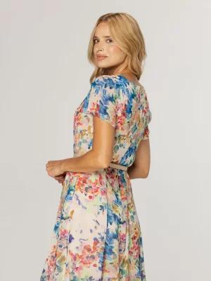 34. Biała sukienka w kolorowe kwiaty