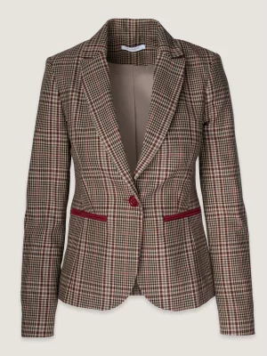 3. Czerwona marynarka damska w kontrastową kratę