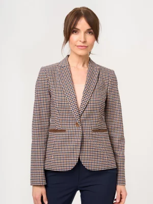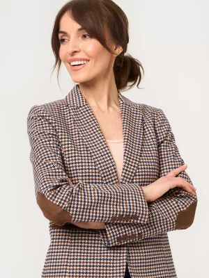 3. Brązowa marynarka damska w pepitkę