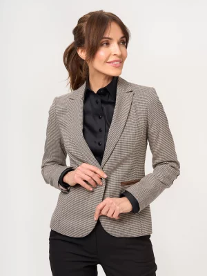 4. Marynarka damska w beżowo-szarą pepitkę