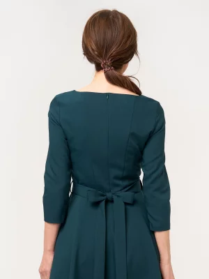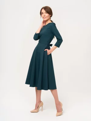 2. Ciemnozielona rozkloszowana sukienka
