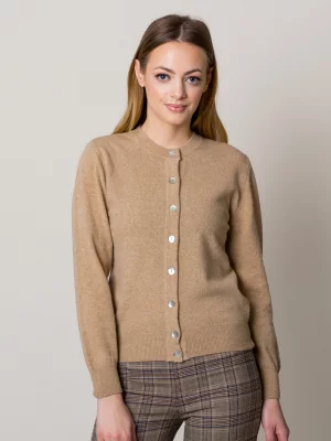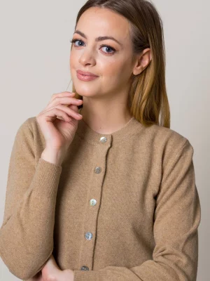 3. Camelowy kardigan damski z dużymi guzikami