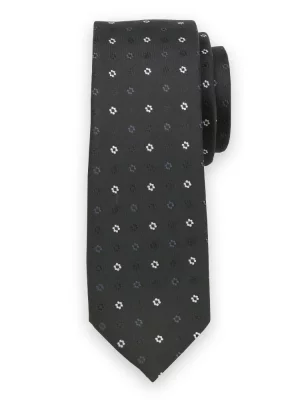 10. Wąski czerwony krawat w paski, pepitkę i prążek