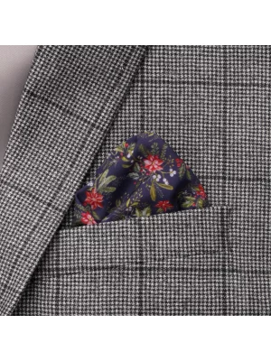 4. Granatowy krawat w kolorowe kwiaty