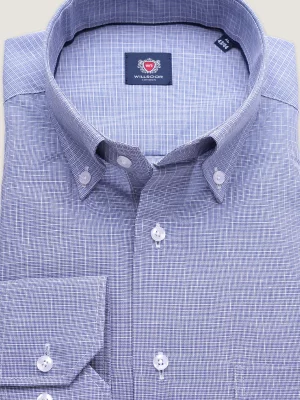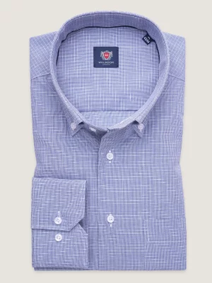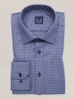 10. Niebieska klasyczna koszula w drobny wzór