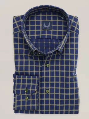 11. Granatowa taliowana koszula w kratę