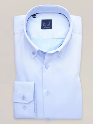 9. Biała klasyczna koszula z niebieskimi kontrastami