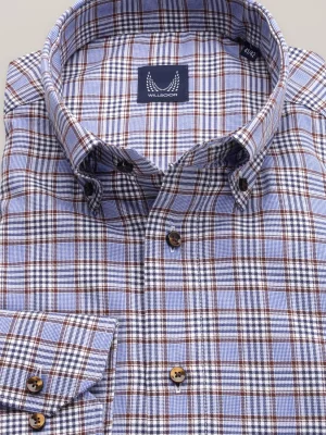 9. Biała klasyczna koszula z brązowymi kontrastami