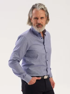 24. Ciemnogranatowa koszula o mocno taliowanej sylwetce
