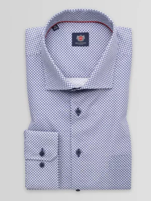 3. Biała klasyczna koszula w granatowe wzory