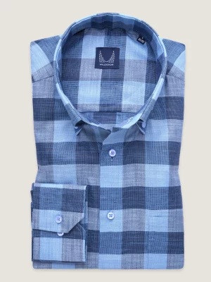 34. Niebieska klasyczna koszula z lnem naturalnym