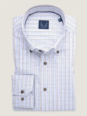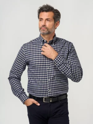 Granatowa klasyczna koszula w zieloną kratę