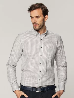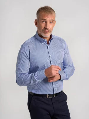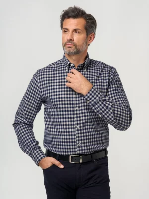 Dla panów szukających mniej formalnych wariantów dostępne są modele w kratkę, mikrowzory czy subtelne struktury tkaniny. Koszula taliowana w odcieniach błękitu, szarości czy granatu sprawdzi się zarówno w biurze, jak i podczas spotkań towarzyskich.