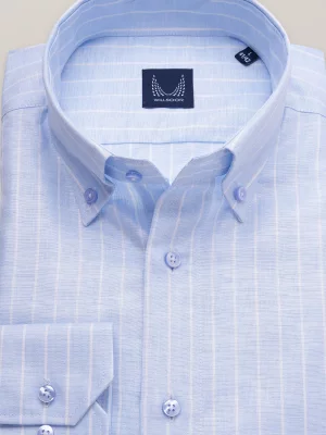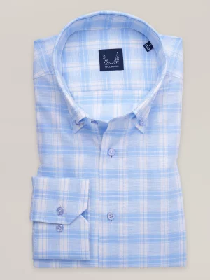 28. Jasnobłękitna taliowana koszula na spinki