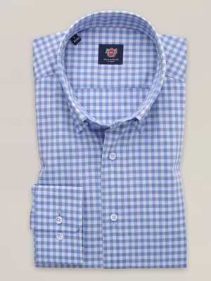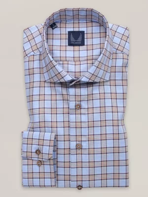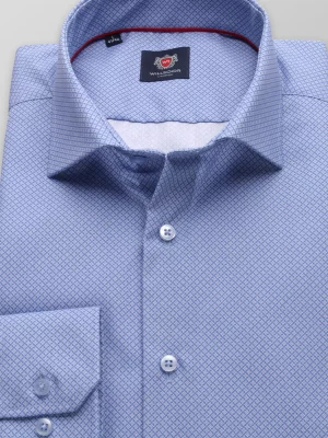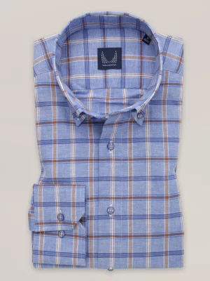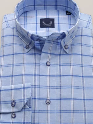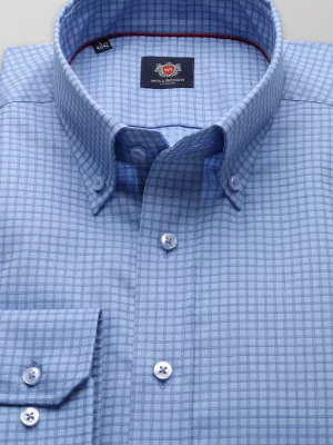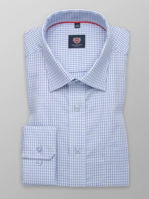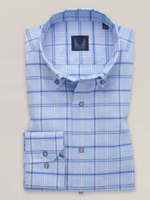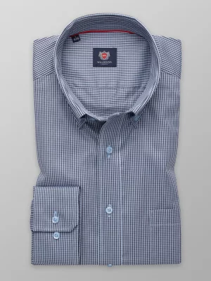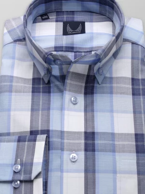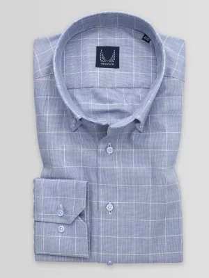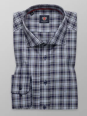 9. Koszula w granatowo-błękitną kratkę o mocno taliowanej sylwetce