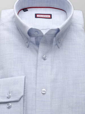 Błękitna taliowana koszula z podpinanym kołnierzykiem