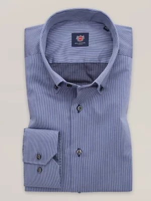 26. Jasnobłękitna taliowana koszula w paski i prążki