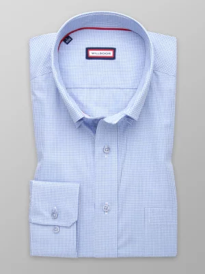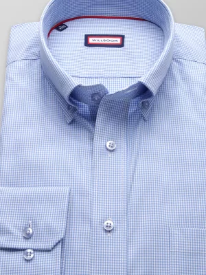 29. Błękitna taliowana koszula w drobną kratkę