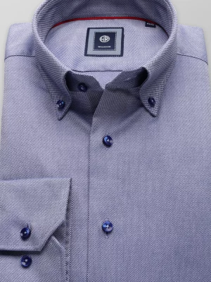 Błękitna taliowana koszula z podpinanym kołnierzykiem