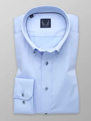 Jasnobłękitna taliowana koszula z podpinanym kołnierzykiem