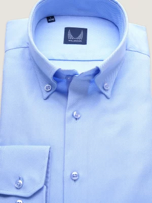 Jasnobłękitna taliowana koszula z podpinanym kołnierzykiem