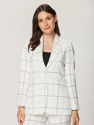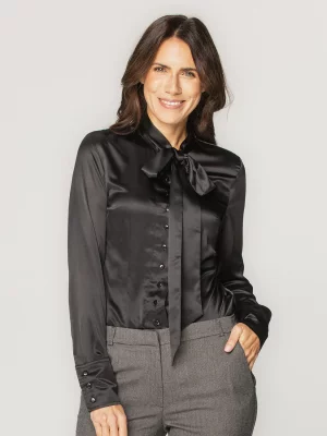Czarna koszula o prostym kroju w beżowo-białe oczka