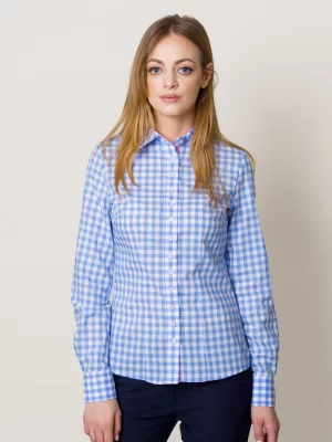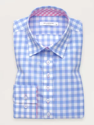 21. Granatowa klasyczna koszula w niebieską kratkę
