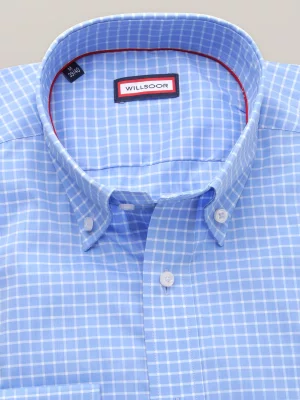 7. Jasnobłękitna taliowana koszula w kratkę