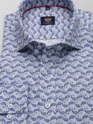 59. Niebieska klasyczna koszula w bordowy orientalny wzór