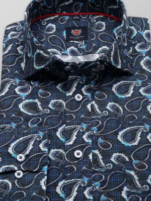 Granatowa klasyczna koszula we wzory
